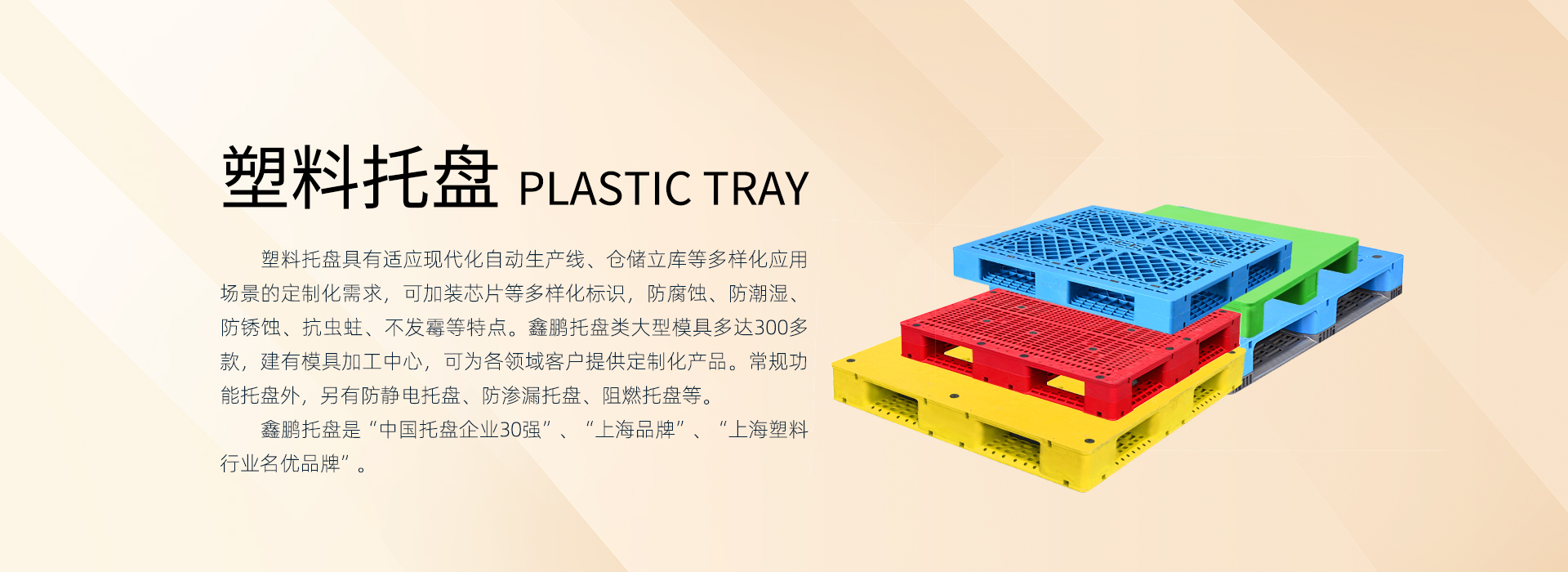 上海鑫鵬塑料制品有限公司作為集團最早成立的企業(yè),是上海市高新技術(shù)企業(yè),上海市專精特新企業(yè)、上海市小巨人先進企業(yè)。公司配有專業(yè)的高分子材料和產(chǎn)品研發(fā)技術(shù)團隊,擁有7項發(fā)明專利,66項實用新型專利;完善的ISO9001質(zhì)量管理體系、ISO14001環(huán)境管理體系及ISO45001職業(yè)健康與安全管理體系為公司及客戶提供了有力的質(zhì)量保證與安全保障。30多年行業(yè)積累,現(xiàn)集團公司整體擁有90多臺160噸-4000噸注塑設備,建有模具生產(chǎn)制造中心、原材料和產(chǎn)品測試中心,配備全套先進的產(chǎn)品檢驗儀器及各種輔助設備。年產(chǎn)塑料制品1800萬件,改性塑料新材料15萬噸。我們的產(chǎn)品廣泛應用于食品飲料、物流倉儲、生鮮蔬果、煙酒、電商、化工、醫(yī)藥、紙業(yè)、汽車、環(huán)衛(wèi)等行業(yè)領(lǐng)域,可根據(jù)不同行業(yè)客戶應用場景定制化產(chǎn)品。行業(yè)經(jīng)驗